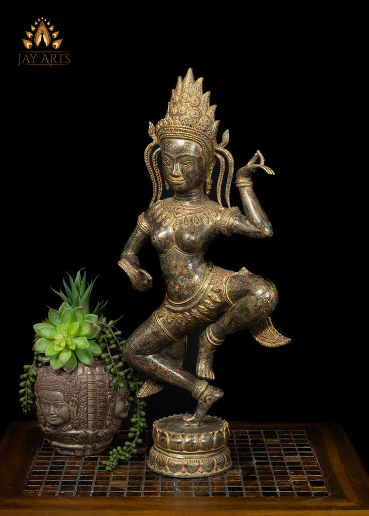 22" Cambodian Apsara – Celestial Dancer Bronze Sculpture