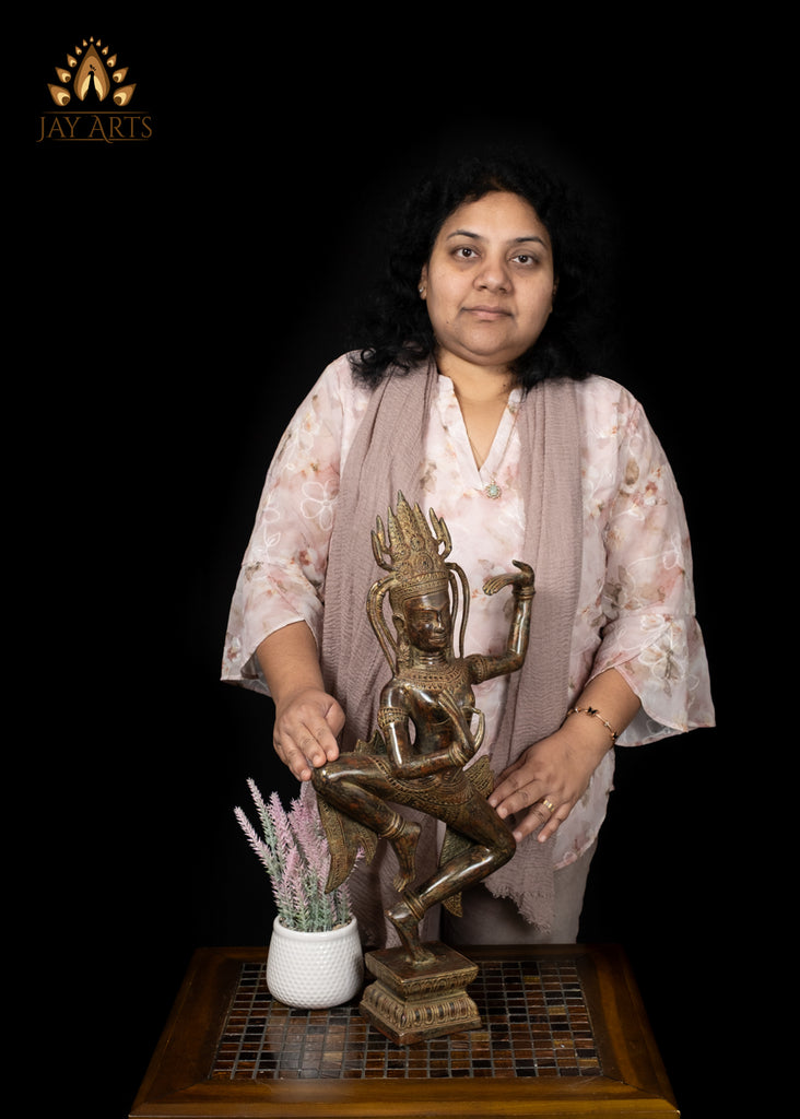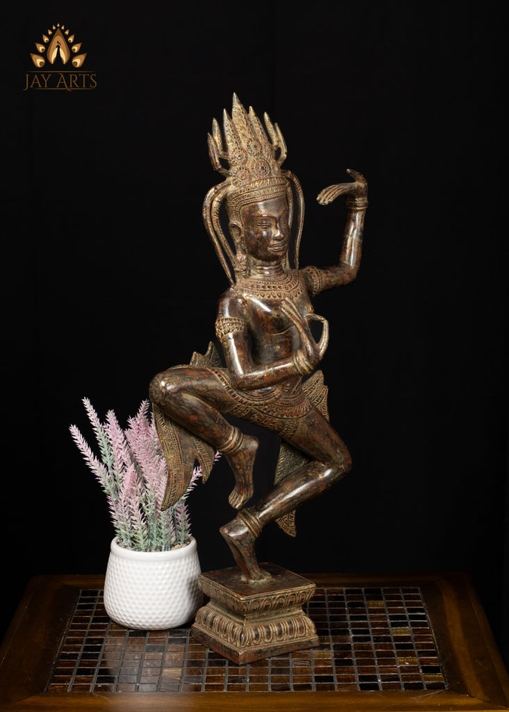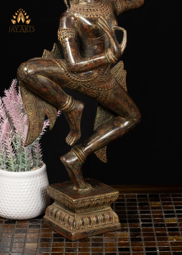 23" Bronze Dancing Apsara Statue Khmer Elegance in Brown-Red Patina