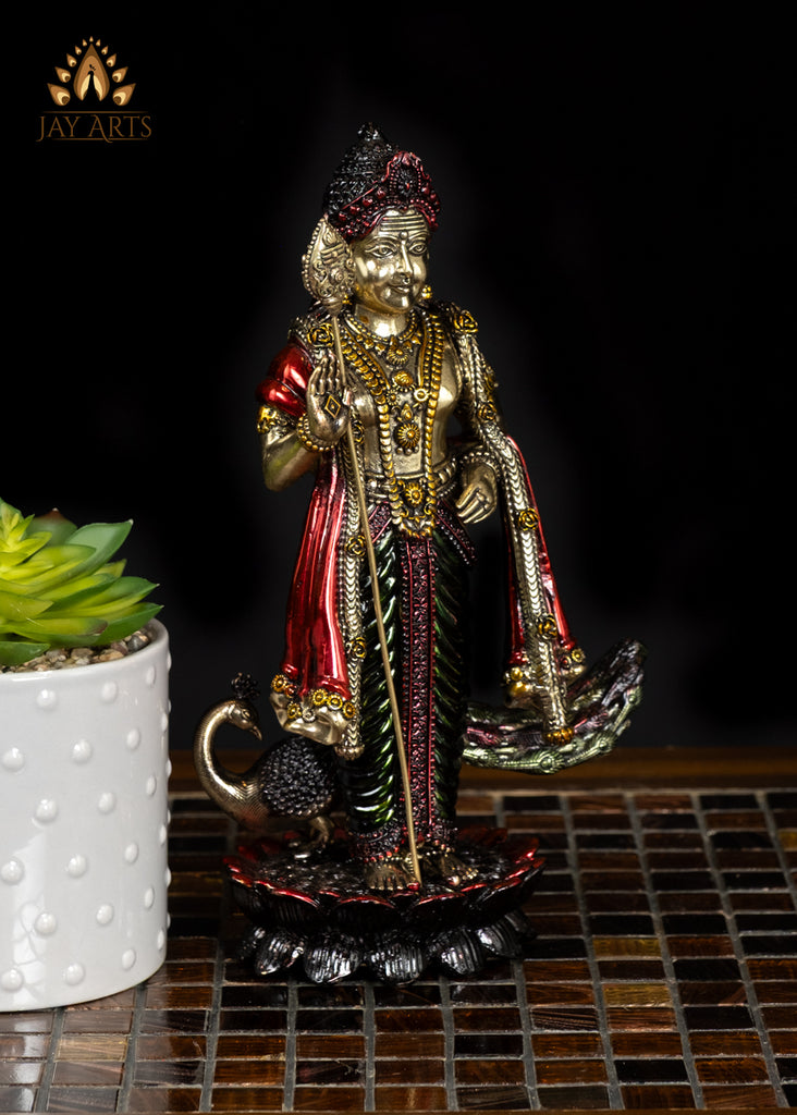 10" Beautiful Lightweight Murugan Brass Statue in Vibrant Colors with Exquisite Details