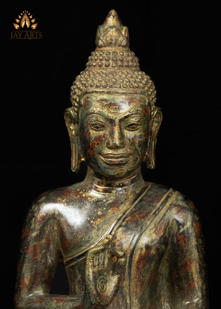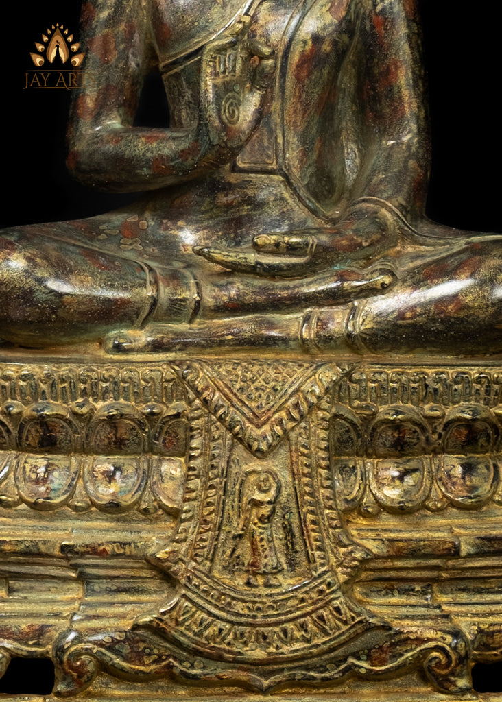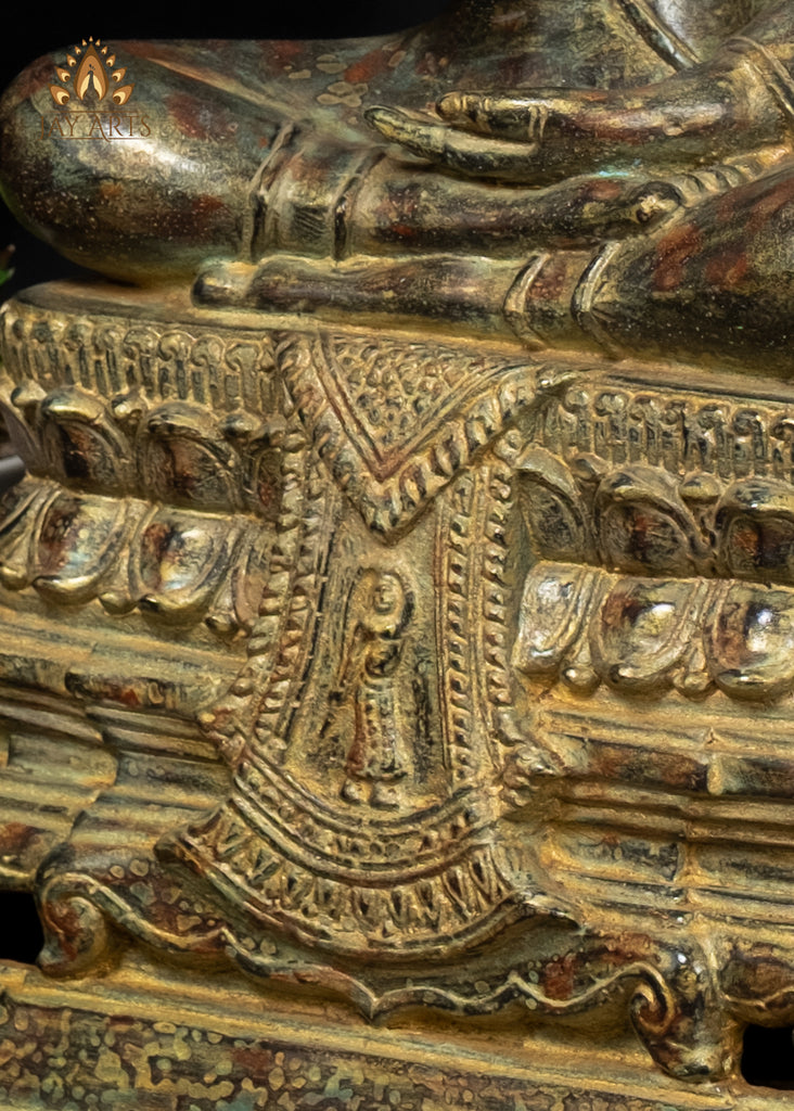 15" Bronze Buddha Statue in Vitarka Mudra on Phra Mae Thorani Pedestal – Cambodian Art