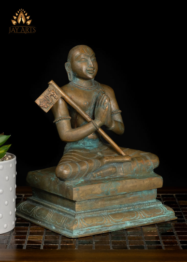 9" Bronze Statue of Sri Ramanujacharya Seated in Devotion